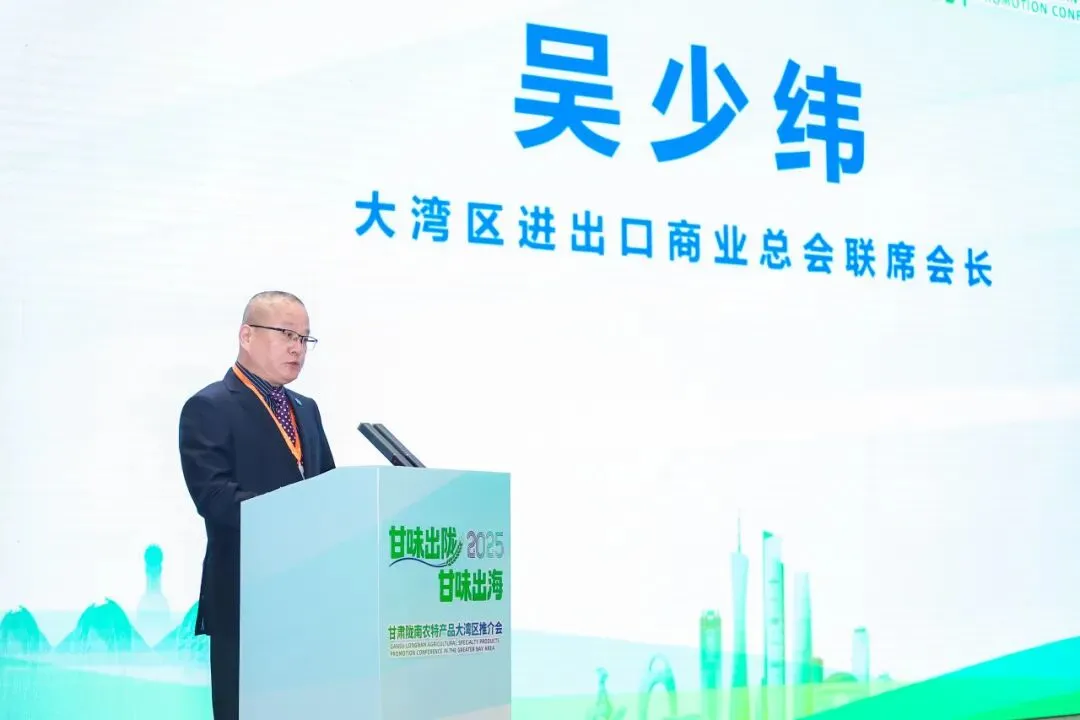 大湾区进出口商业总会联席会长、广东进出口商会会长吴少纬作嘉宾发言时表示,商会作为首个整合大湾区“9+2”城市进出口产业优势的创新平台,将充分发挥香港双向平台功能与湾区贸易网络、物流体系及品牌运营能力,推动陇南特色资源与湾区市场需求高效对接,构建“乡村振兴+湾区赋能+国际市场”的协同发展模式。