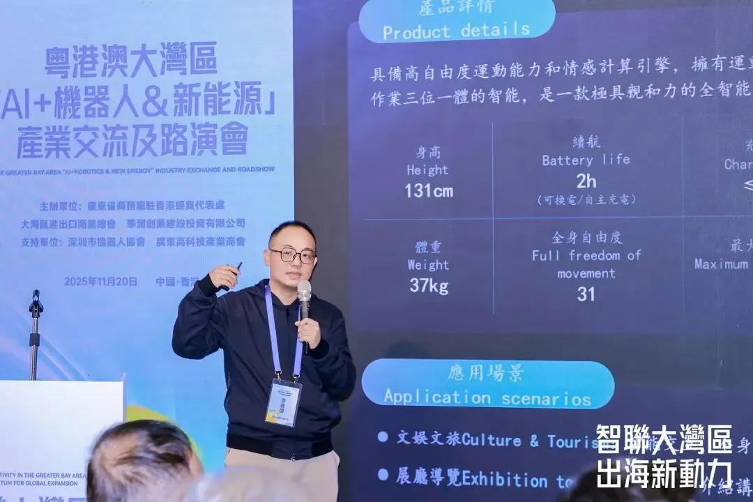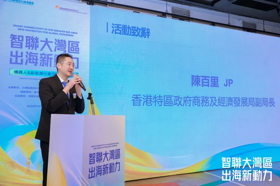 11月20日,大湾区进出口商业总会联合华润创业建设投资有限公司主办,广东省商务厅驻香港经济贸易代表处协办,广东高科技产业商会、深圳市机器人协会支持的“智联大湾区出海新动力”机器人&新能源行业交流及路演活动在香港圆满举行。旨在汇聚粤港两地优质企业、行业精英和专业人士,通过创新展示、技术交流、项目路演、供采对接等形式,搭建“项目+资本+场景+渠道”的全链条对接平台。