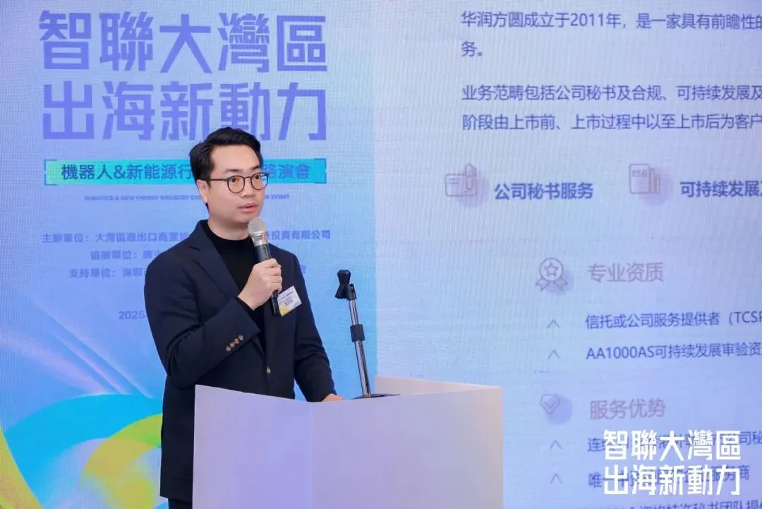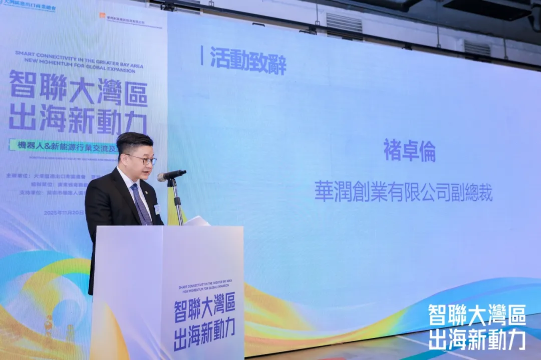 华润创业有限公司副总裁褚卓伦致辞时表示,这次活动,一是依托香港“背靠祖国、联通世界”的区位与资本优势助力企业出海;二是深化区域协同,深化华创建投与大湾区进出口商业总会的“内引外联”合作机制;三是构建产业链生态,通过“展示+路演+交流”模式,衔接产业、资本、场景资源,完善“研发——转化——落地——出海”全链条生态;四是契合战略方向,以具体实践推动“大湾区智造”走向世界,为中国产业升级与全球绿色转型注入具象化动能。