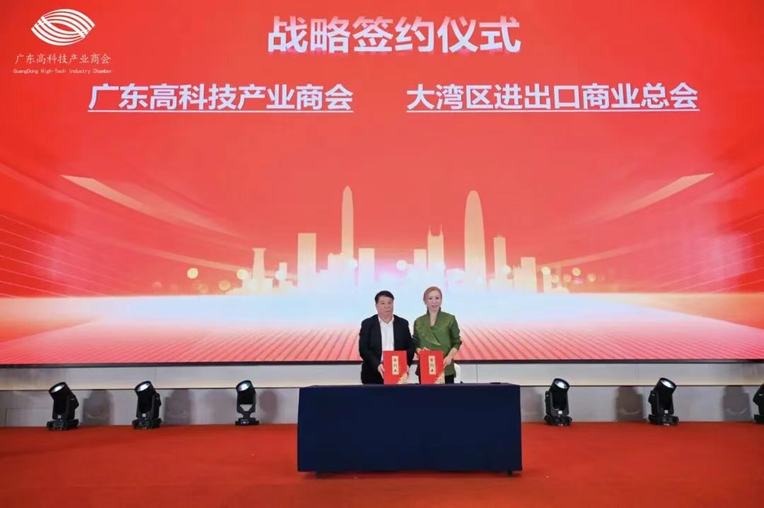 会议上,大湾区进出口商业总会与广东高科技产业商会进行了战略合作签约仪式。两大商会将携手共进,建立紧密合作和协同发展长效机制,充分发挥行业引领作用,整合资源优势,共同推动大湾区进出口贸易数字化升级和高科技产业全球化发展。
