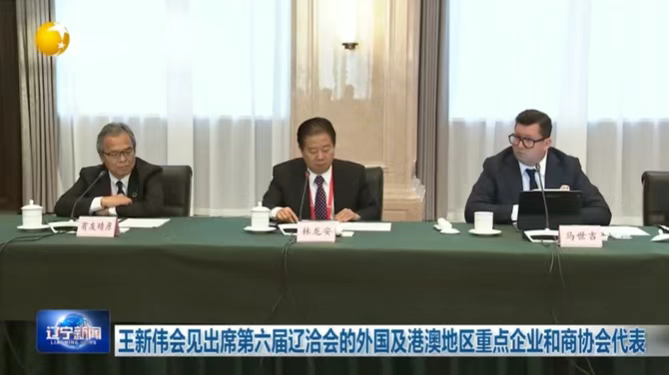 9 月 24 日下午,省委副书记、省长王新伟在沈阳会见外国及港澳地区重点企业和商协会代表,大湾区进出口商业总会会长林龙安代表商会出席并发言。王新伟省长重点介绍辽宁全面振兴新突破三年行动的历史性进展,强调 “投资辽宁正当其时,大有可为”,希望大家以此次活动为契机,发掘新商机,拓展新合作。