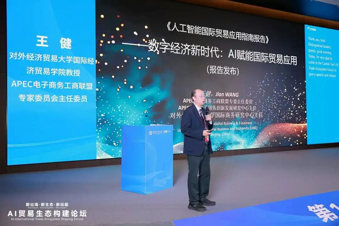 论坛首先由对外经济贸易大学国际经济贸易学院教授、APEC电子商务工商联盟专家委员会主任委员王健对《人工智能国际贸易应用指南报告》进行发布解读,为人工智能在国际贸易领域的应用提供了专业且全面的指引。