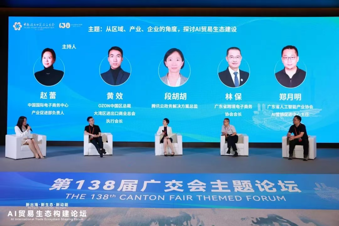 圆桌对话环节,由中国国际电子商务中心产业促进部负责人赵蕾主持,围绕“从区域、产业、企业的角度,探讨AI贸易生态建设”这一主题展开深入交流。大湾区进出口商业总会执行会长、OZON中国区总裁黄效与广东省跨境电子商务协会会长林保、腾讯云政务解决方案总监段胡胡、广东省人工智能产业协会AI营销促进中心主任郑月明等对话嘉宾一道,从区域、产业、企业的角度,共同探讨AI贸易生态建设。